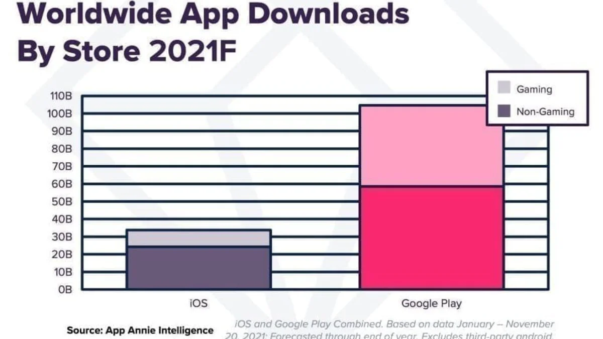 Selon App Annie, les utilisateurs ont téléchargé 140 milliards de nouvelles applications en 2021, contre 130 en 2020 et 120 en 2019.