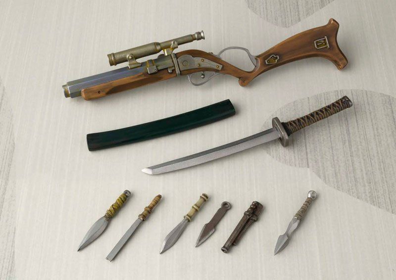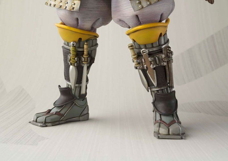 Sculpté par Takeyuki Takeya et Junichi Taniguchi, le guerrier Mandalorien est brillamment réinventé en samouraï sans aucun maître, un ronin équipé d’armes de jet en silex, d’un sabre, un sac à dos lance missile amovible, deux paires de mains interchangeables et tout un assortiment de lames plus petites.