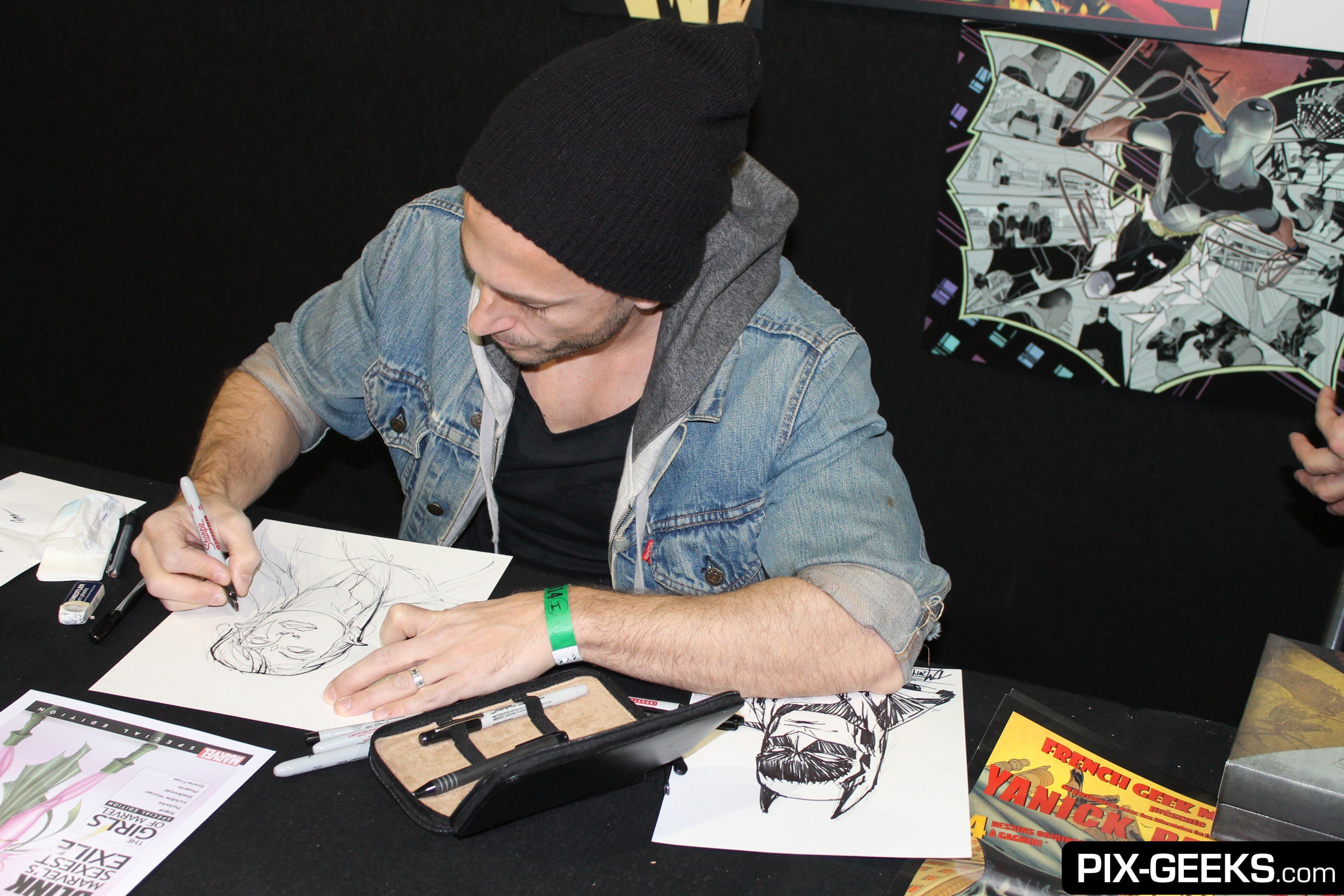 L’artiste Grégoire Guillemin était présent sur le salon et vendait ses désormais célèbres reprographies dans lesquelles on peut apercevoir les super héros dans des postures les plus « bassement humaines » (curage de nez, doigt d’honneur, épilation, rasage…).