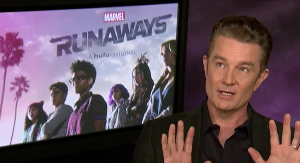 James Marsters nous a avoué qu’il ne connaissait pas le comic book Runaways lorsqu’on lui a proposé d’auditionner pour le rôle de Victor Stein. Il a par contre tout de suite été intéressé quand on le lui a présenté comme « un méchant Elon Musk ». L’acteur nous a expliqué qu’il n’avait pas préparé son rôle, mais que sur le chemin vers l’audition il avait décidé de faire une impro… qu’il a rejouée pour nous :
