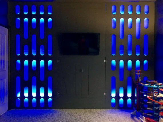 Notre as du marteau a même imaginé un mur très inspiré du design de l’Etoile Noire qui renferme une cachette secrète. Derrière se trouvent tout le nécessaire pour rythmer des soirées pyjamas entre copains : des sabres-laser et des Nerf, un max de Nerf !