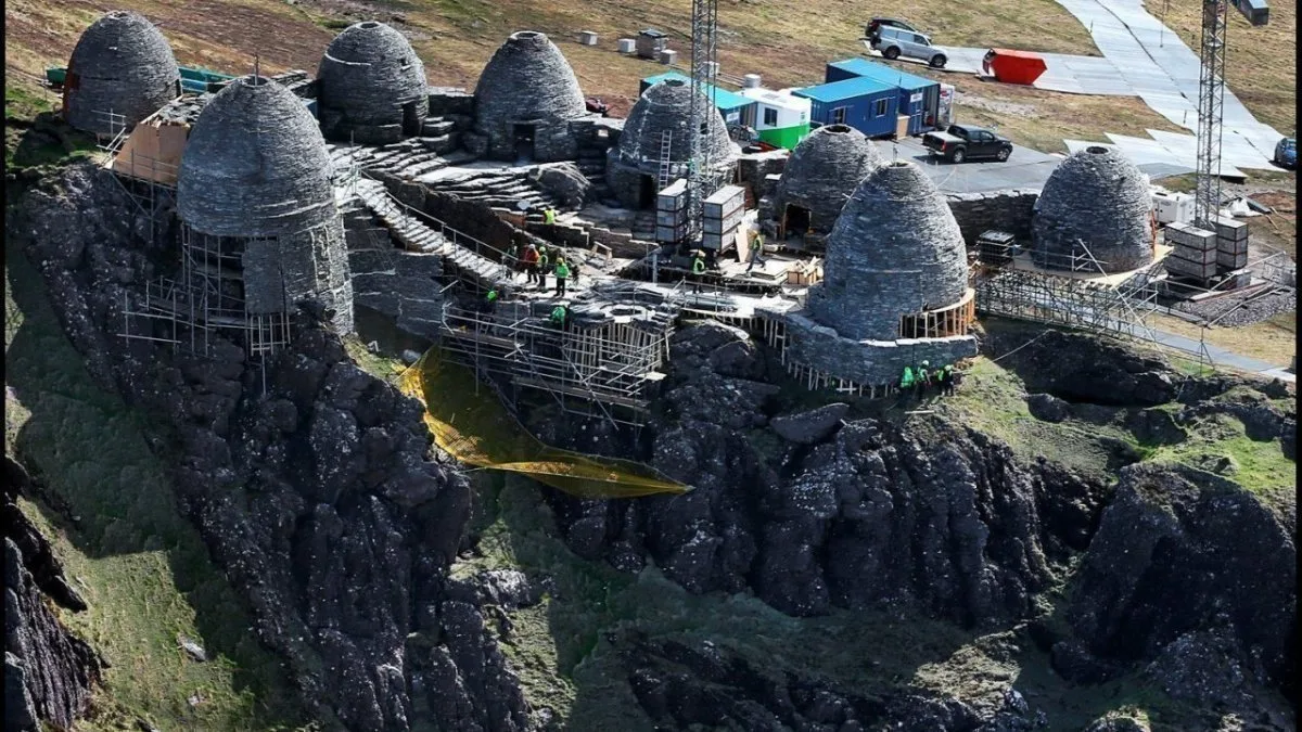 Les équipes du tournage qui sont déjà sur l’île depuis près de 6 semaines y ont construit une route de 1,5 km pour faciliter l’accès au décor. Vous allez pouvoir y découvrir des huttes de pierre de la planète Ahch-To, lieu où s’est retiré comme vous le savez déjà Luke Skywalker.