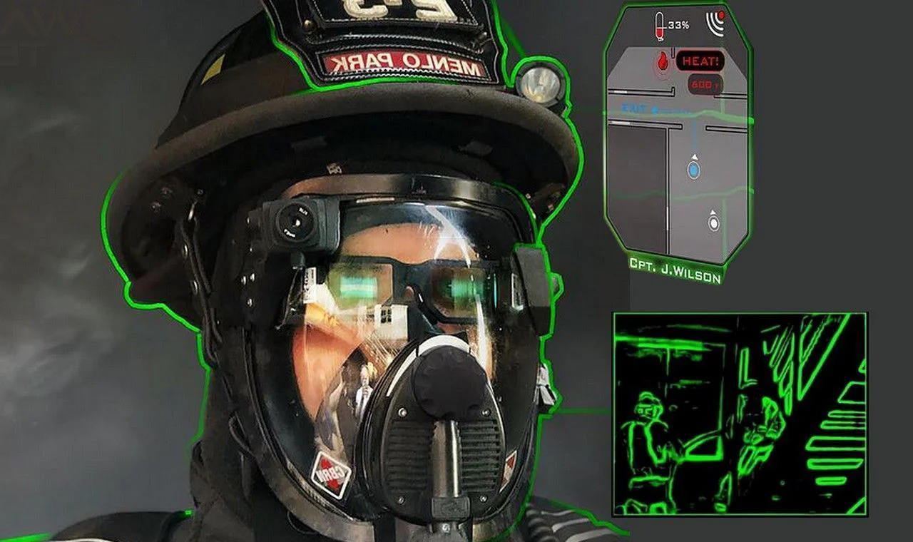 Pour se faire, le casque s’est vu équipé d’une caméra thermique infrarouge (pratique pour détecter les victimes inconscientes) ainsi que d’un système d’affichage des lieux projetant directement sur la visière (et diffusant sur un écran à distance).