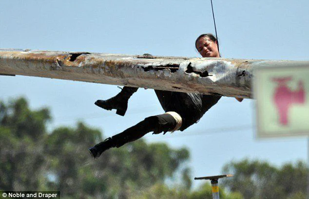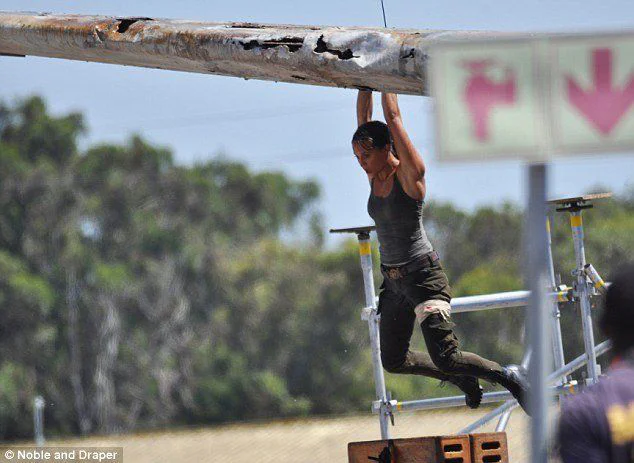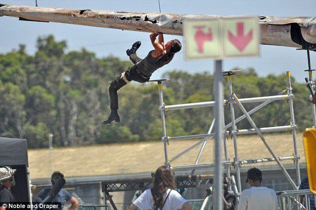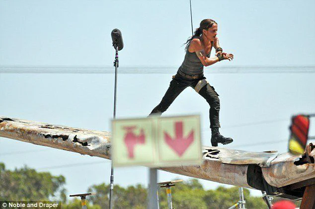 On peut y découvrir l’actrice suédoise en posture difficile en plein milieu d’une course poursuite. Après avoir glissé sur ce qui ressemble à l’aile rouillée d’un vieil avion, elle se retrouve dans le vide, et ne parvient à remonter qu’à la force de ses poignets (et aussi grâce aux harnais qui disparaîtront en post production).