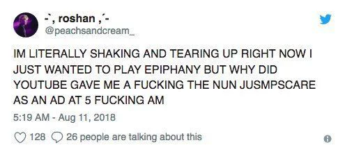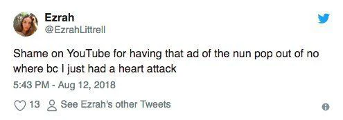 C’est vrai qu’on imagine bien l’angoisse des pauvres utilisateurs qui sont tombés sur une nonne démoniaque hurlante alors qu’ils voulaient juste regarder le dernier clip de Drake ou la dernière vidéo de Nabilla.